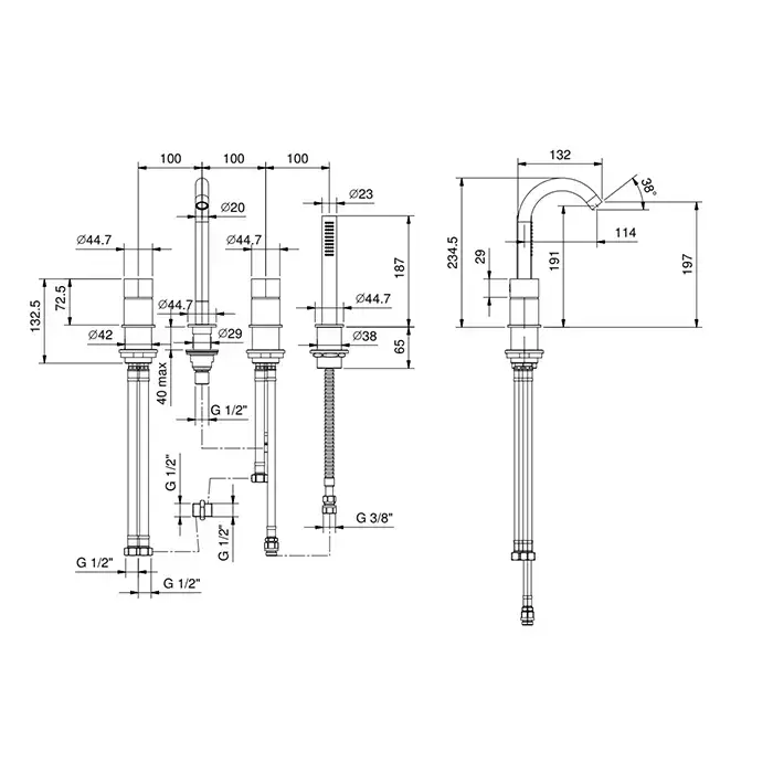 Fantini AA/27 Смеситель на борт ванны, с изливом и ручным душем, цвет: матовая натуральная сталь