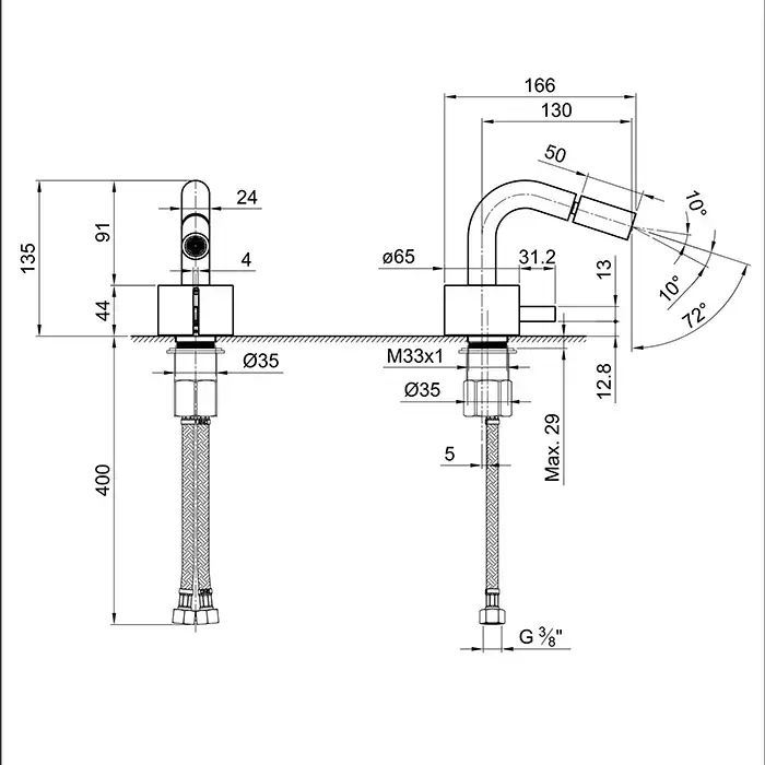 Fantini AF/21 Смеситель для биде, 1 отв., излив: 13 см, цвет: матовая натуральная сталь