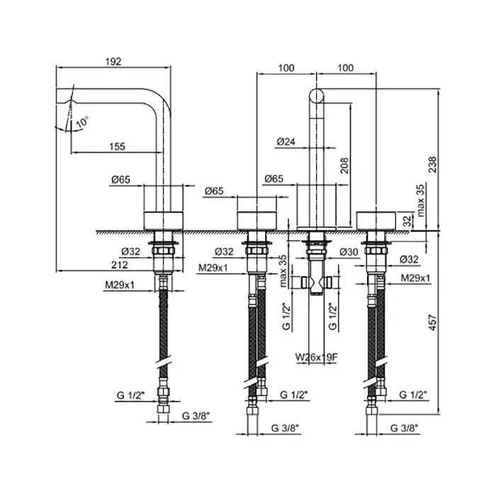 Fantini AF/21 Смеситель для раковины, 3 отв., высокий излив, излив: 15.5 см, цвет: Matt Gun Metal PVD