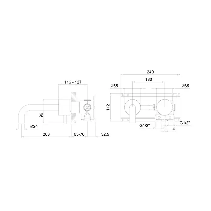 Fantini AF/21 Смеситель для раковины, настенный, излив: 20.8 см, цвет: матовая натуральная сталь