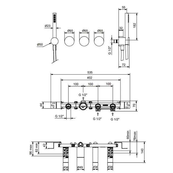 Fantini AF/21 Смеситель для ванны, встраиваемый, на 2 потока, ручная лейка, гибкий шланг 150см, (наружная часть) цвет: Matt British Gold PVD