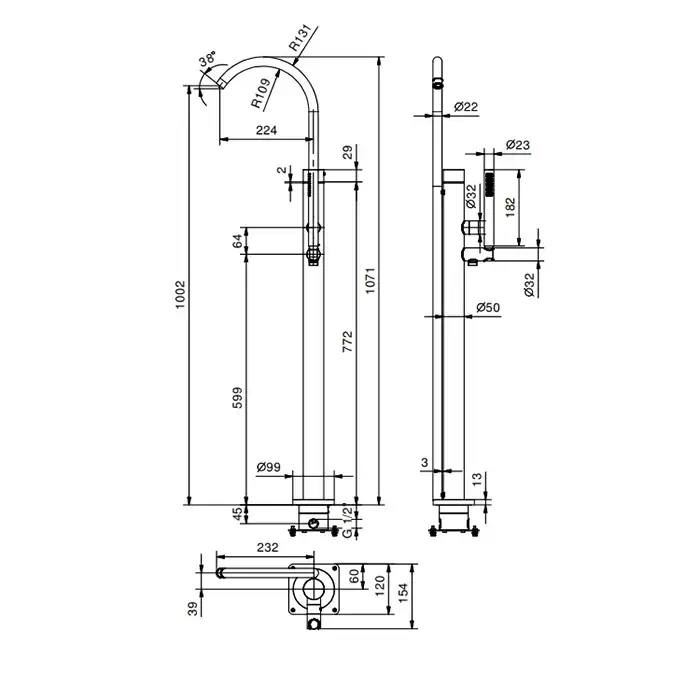 Fantini AK/25 Смеситель для ванны, с ручной лейкой и шлангом, напольный, (наружная часть) цвет: Matt Gun Metal PVD