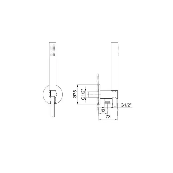 Fantini AL/23 Душевой набор: вывод воды на 1/2”, шланг 150 см, ручная лейка FIT, держатель для лейки, цвет: хром