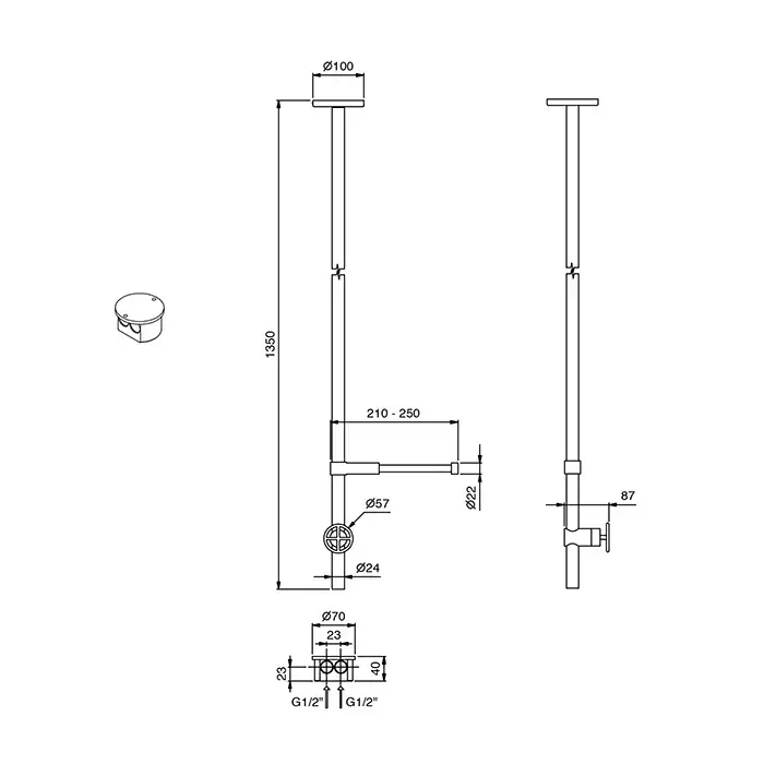 Fantini Fontane Bianche Смеситель для раковины, потолочный, излив 135 см, цвет: Matt Gun Metal PVD