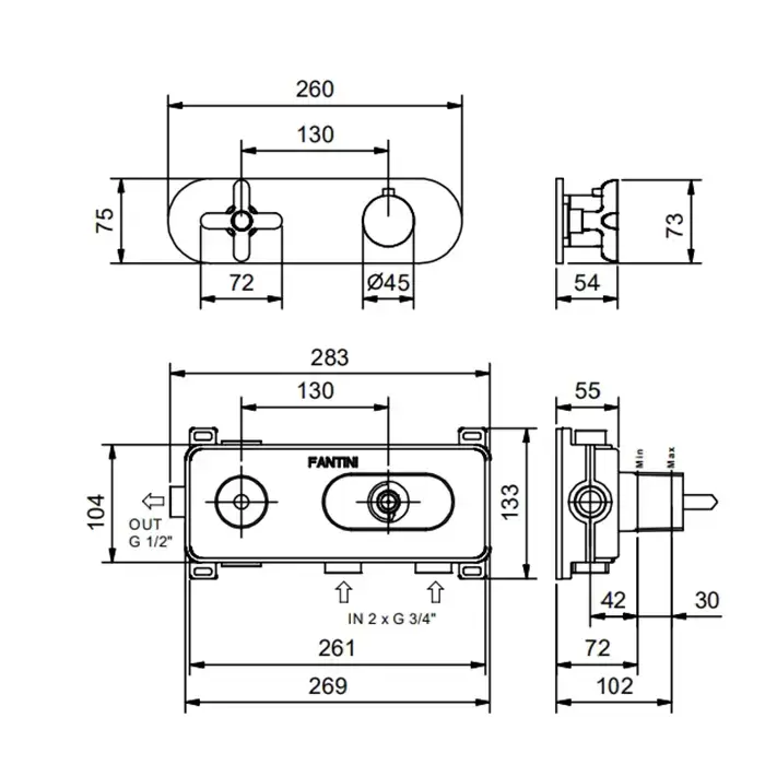 Fantini Icona Classic Смеситель для душа, встраиваемый, термостатический, цвет черный матовый