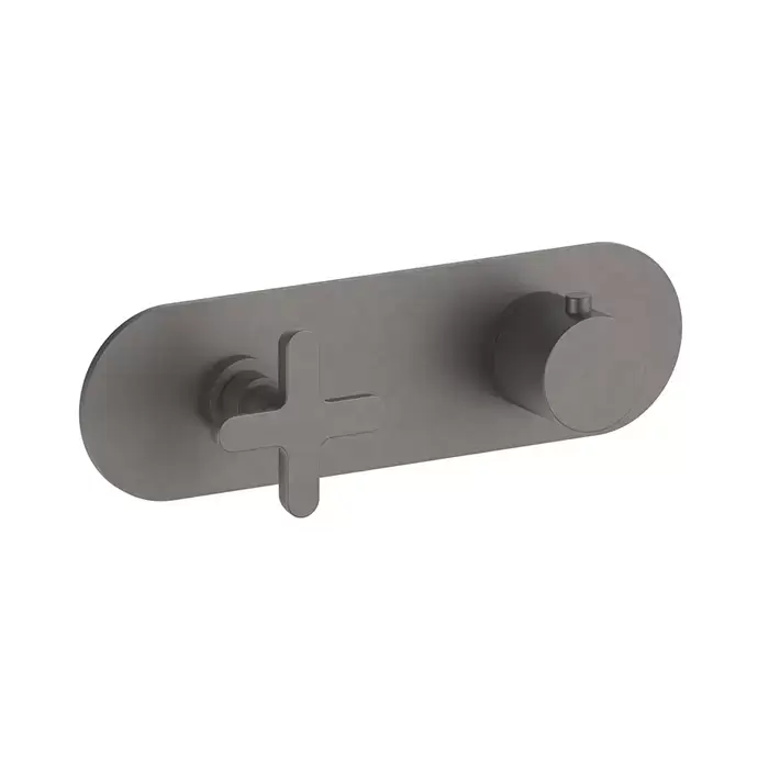 Fantini Icona Classic Смеситель для душа, встраиваемый, термостатический, на 2 источника, 3/4", (наружняя часть), цвет: Matt Gun Metal PVD