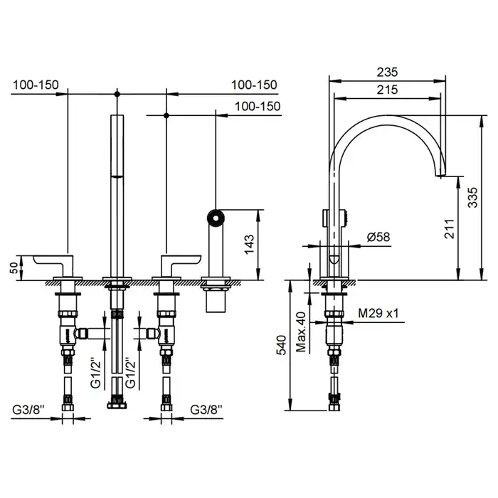 Fantini Icona Deco Смеситель для кухни, 4 отв, без донного клапана, излив 215мм, с ручн душем, цвет: хром