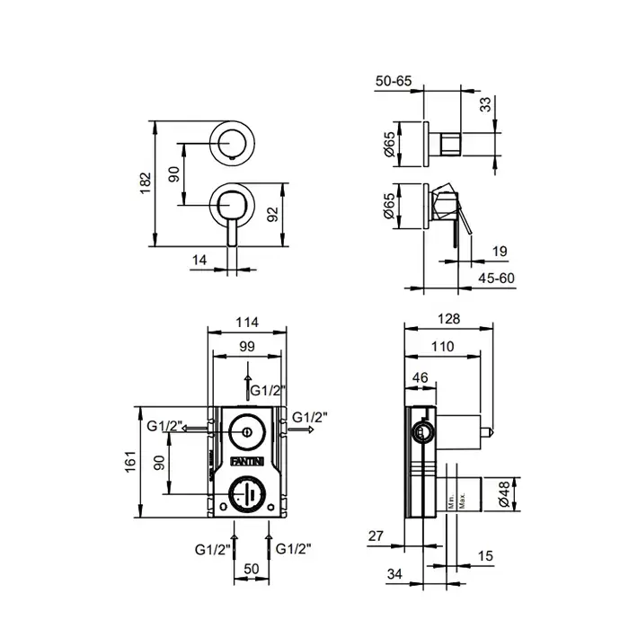 Fantini Lame Смеситель для душа, встраиваемый, переключатель на 3 источника, цвет: черный матовый