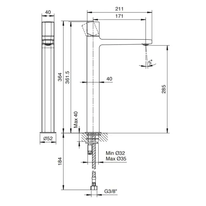 Fantini Lame Смеситель для раковины, 1 отверстие, высокий излив, цвет: хром