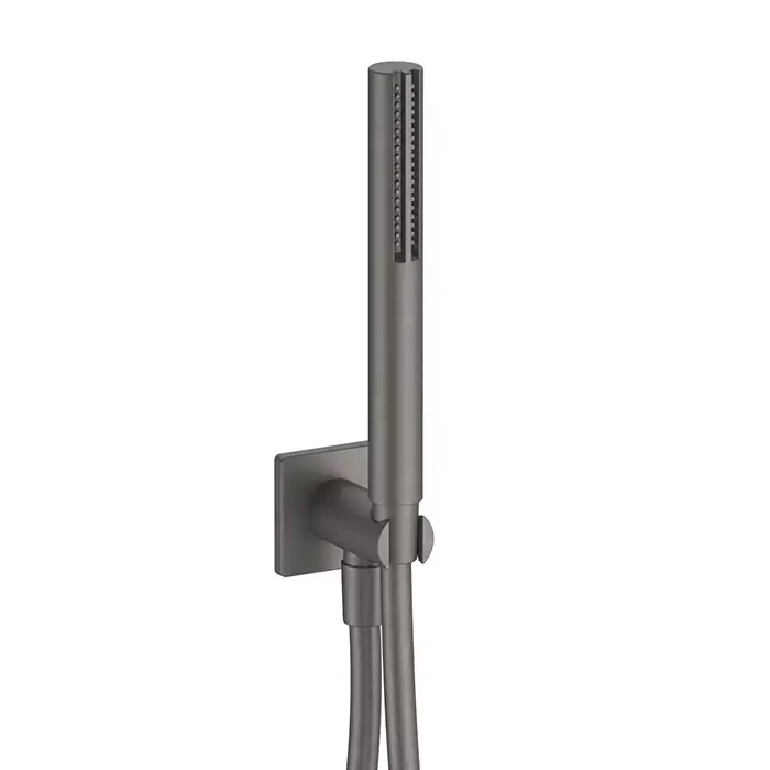 Fantini Milano Душевой набор: вывод воды на 1/2”, шланг 150 см, ручная лейка SUN, держатель для лейки, цвет: Matt Gun Metal PVD