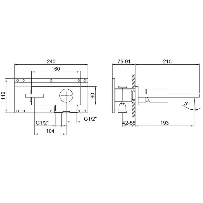 Fantini Milano Смеситель для раковины, настенный, излив: 190 мм, цвет: матовая натуральная сталь
