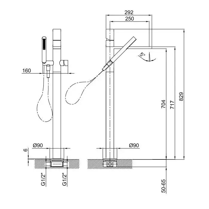 Fantini Milano Смеситель для ванны, напольный, излив: 250 мм, цвет: матовая натуральная сталь