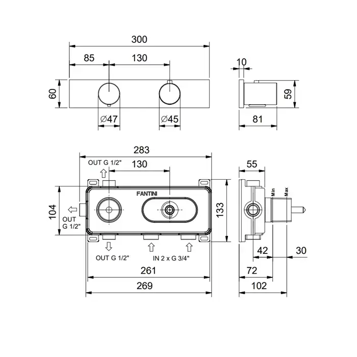 Fantini Milano Термостатический встраиваемый смеситель для душа, 3/4'' на 3 потока, цвет: хром