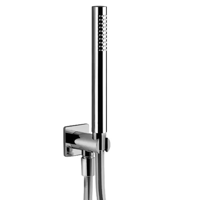 Fantini Mint Душевой комплект с ручным душем, держателем с подводом воды и шлангом 150см., цвет: матовая натуральная сталь