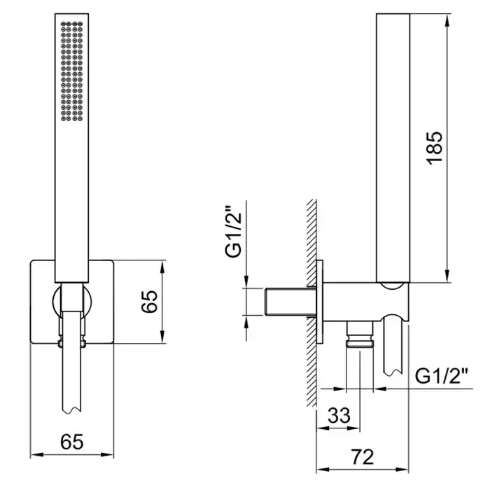 Fantini Mint Душевой комплект с ручным душем, держателем с подводом воды и шлангом 150см., цвет: черный матовый