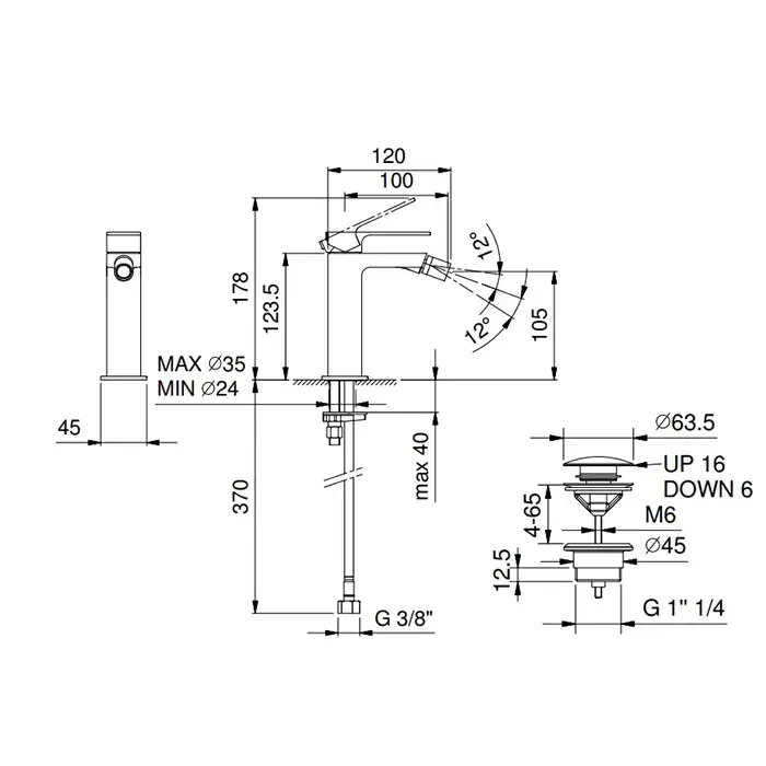 Fantini Mint Смеситель для биде на 1 отв., однорычажный, с донным клапаном, цвет: матовая натуральная сталь