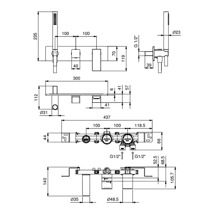 Fantini Mint Смеситель для душа, встраиваемый, на 2 источника, с ручн душем, (наружная часть), цвет: черный матовый