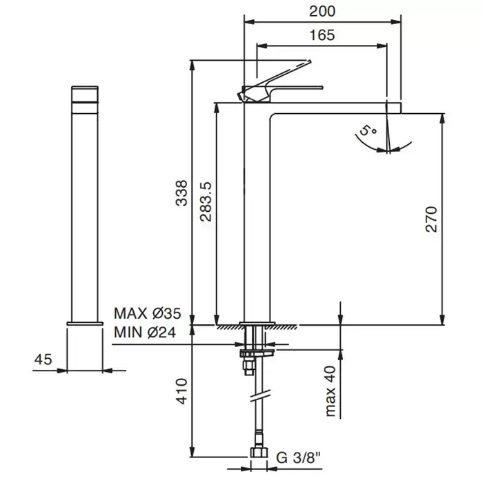 Fantini Mint Смеситель для раковины, 1 отверстие, высокий излив, цвет: хром