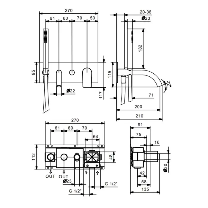 Fantini Myo Смеситель для ванны, встраиваемый, цвет: хром