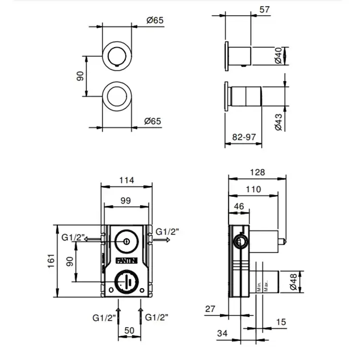 Fantini Nice Смеситель для душа, встраиваемый, на 2 потока, (внешняя часть) цвет: хром