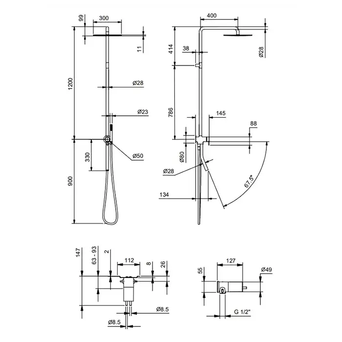 Fantini Nostromo Душевая стойка, со смесителем для душа, встраиваемый, на 2 выхода, (наружняя часть), с верхним душем 30см, цвет: хром