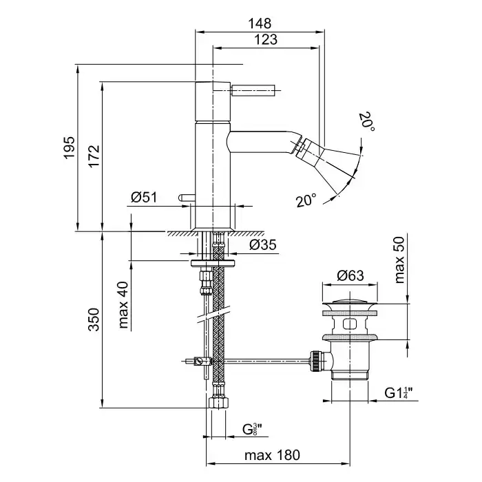 Fantini Nostromo Смеситель для биде, 1 отверстие, цвет: хром