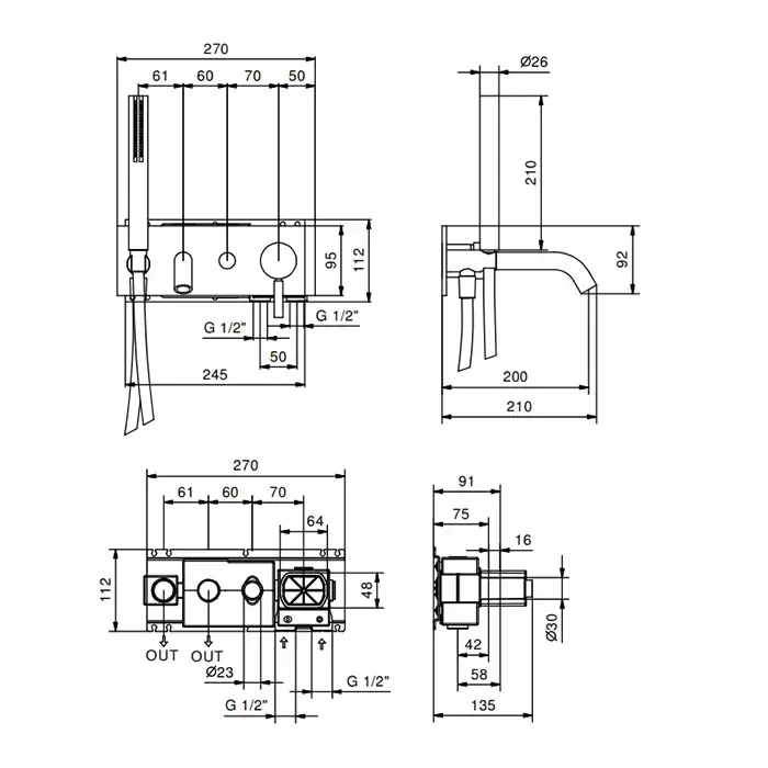 Fantini Nostromo Смеситель для ванны, встраиваемый, цвет: черный матовый