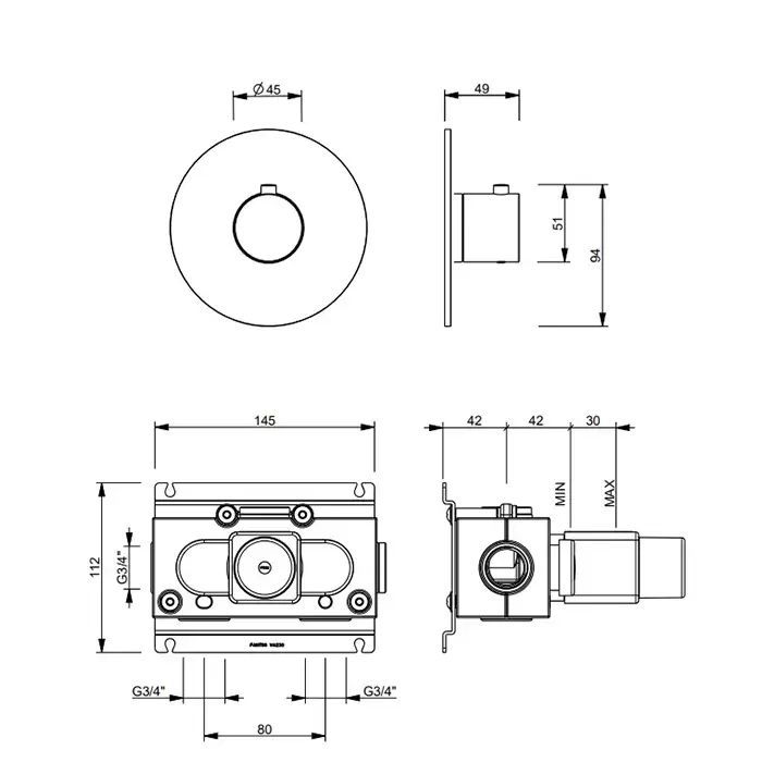 Fantini Sailing Смеситель для душа, встраиваемый, термостатический, без запорного вентиля, внешняя часть, цвет: Deep Black PVD