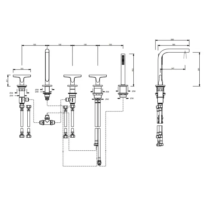Fantini Sailing Смеситель на борт ванны, 5 отв., с изливом, ручным душем и шлангом 150см., цвет: Matt Gun Metal PVD