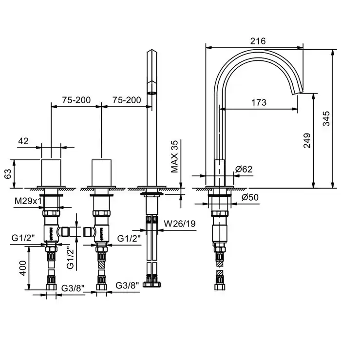 Fantini Venezia In Смеситель для раковины, 3 отв., излив: 150 мм, цвет: хром
