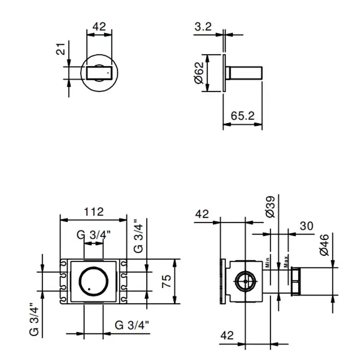 Fantini Venezia Запорный вентиль, без ручки, внешняя часть, цвет: Matt Copper PVD