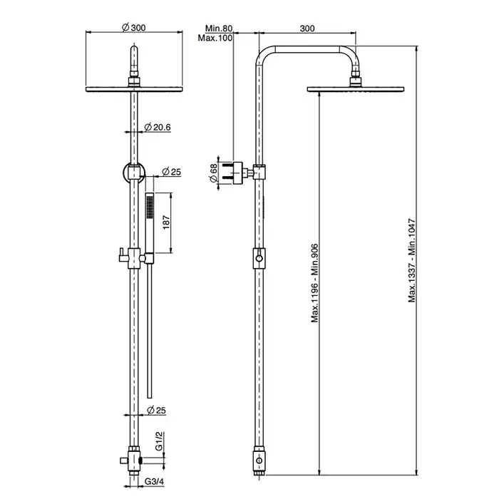 Fima Carlo Frattini Colonne doccia Душевая стойка, верхний душ 25см., с держателем и ручным душем, цвет: черный матовый