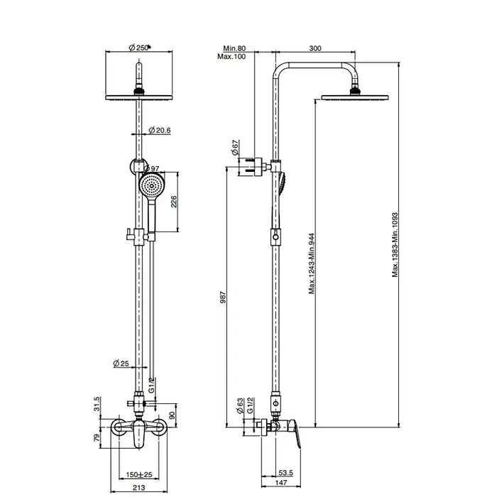 Fima Carlo Frattini Colonne doccia Душевая стойка, верхний душ 25см., со смесителем, с держателем и ручным душем, цвет: хром