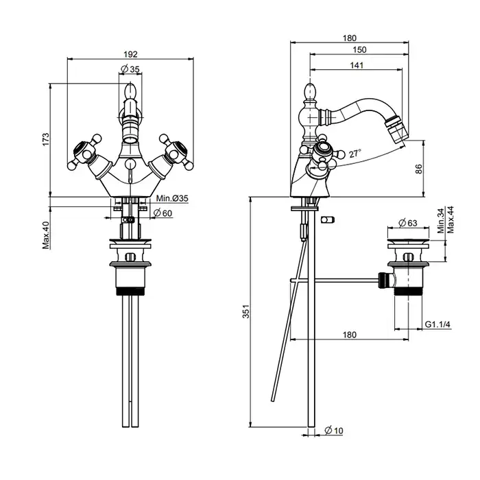 Fima Carlo Frattini Elizabeth Смеситель для биде, на 1 отв., цвет: золото
