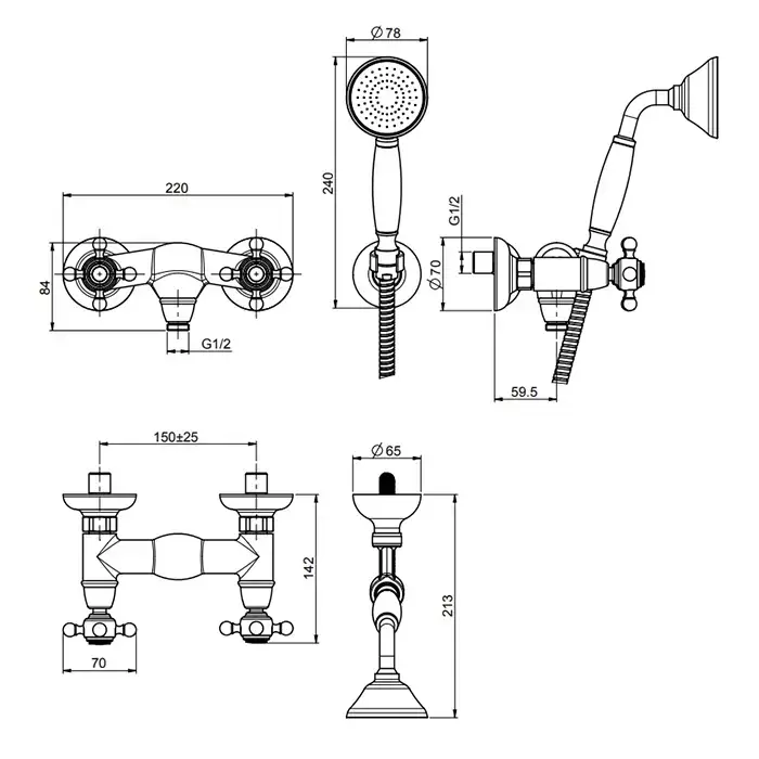 Fima Carlo Frattini Elizabeth Смеситель для душа, настенный, с ручным душем, цвет: золото