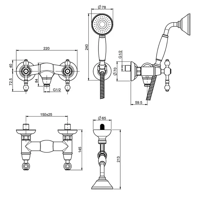 Fima Carlo Frattini Epoque Смеситель для душа, настенный, с ручным душем, цвет: золото