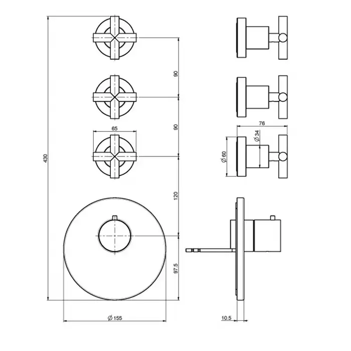 Fima Carlo Frattini Fimatherm Maxima F5333X3CR Смеситель для душа встроенный, термостатический, 3 запорных вентиля, внутренняя часть (F2463) в комплекте, цвет: хром.