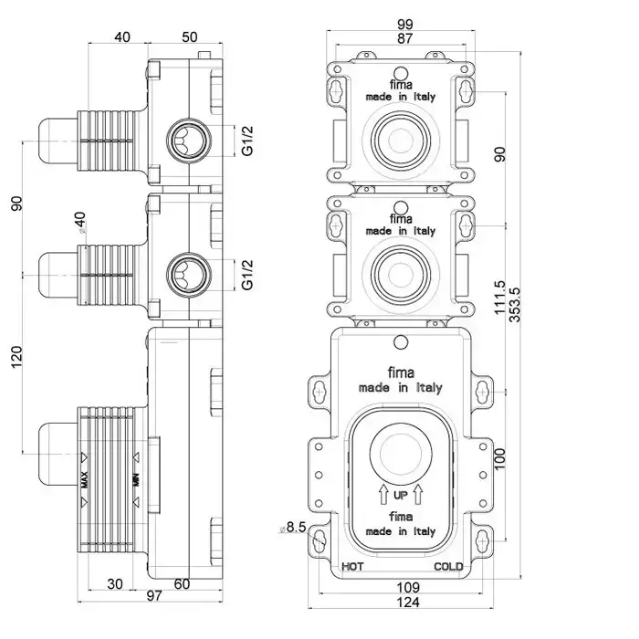 Fima Carlo Frattini Fimathermbox F2462 Внутренняя часть встраиваемого термостатического смесителя для душа, 2 источника