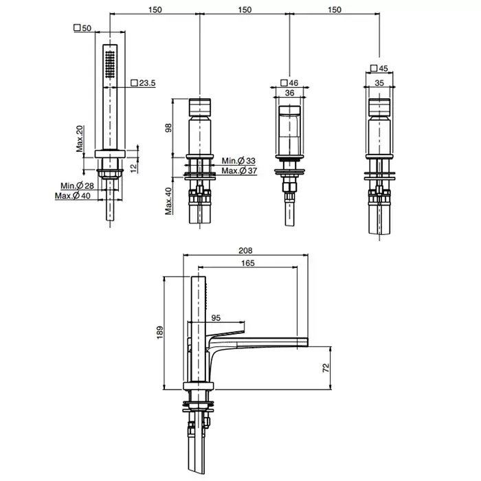 Fima Carlo Frattini Fit Смеситель на борт ванны, на 4 отв., с ручным душем, цвет: черный матовый