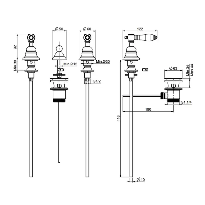 Fima Carlo Frattini Herend Cмеситель для биде на 3 отв., с донным клапаном, цвет: хром