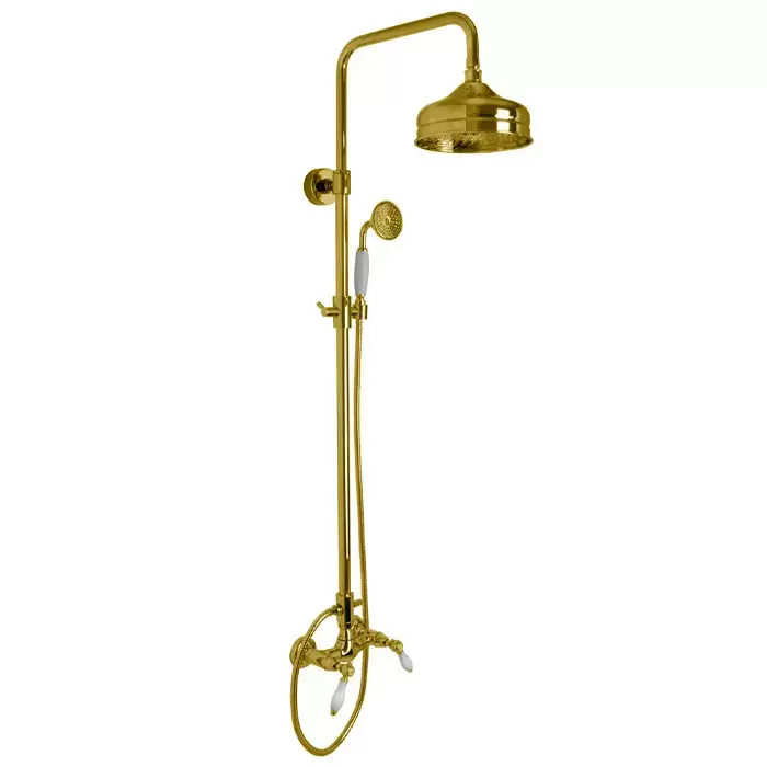 Fima Carlo Frattini Herend Душевая стойка, верхний душ 20см., со смесителем, ручным душем и держателем, черные ручки, цвет: золото