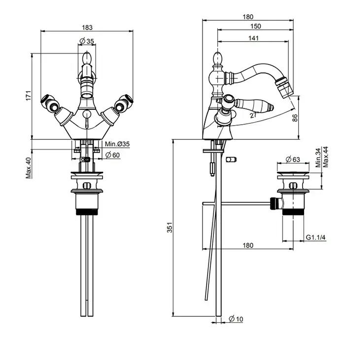 Fima Carlo Frattini Herend Смеситель для биде, на 1 отв., с донным клапаном, черные ручки, цвет: золото