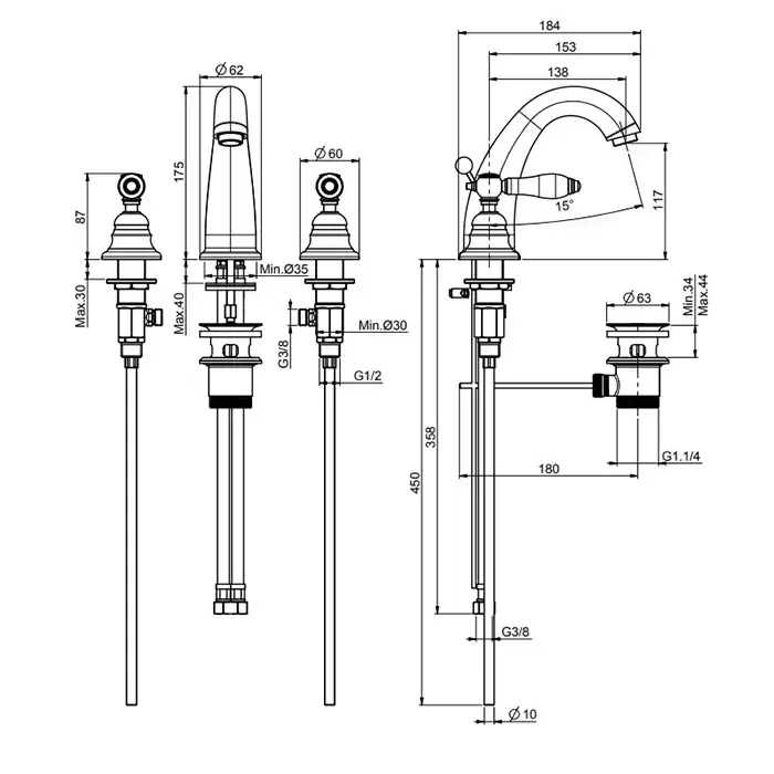 Fima Carlo Frattini Herend Смеситель для раковины, на 3 отв., с донным клапаном, цвет: золото
