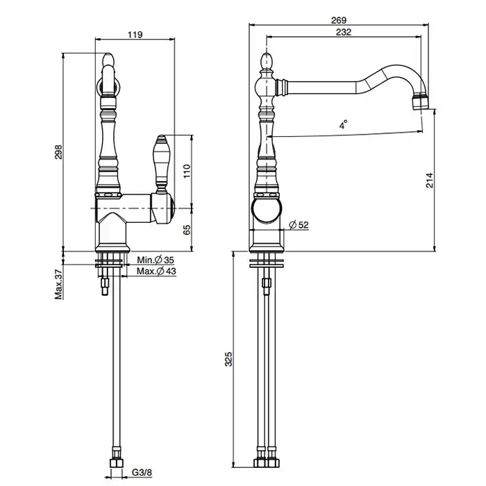 Fima Carlo Frattini Kitchen Смеситель для кухни, на 1 отв., Herend, цвет: золото