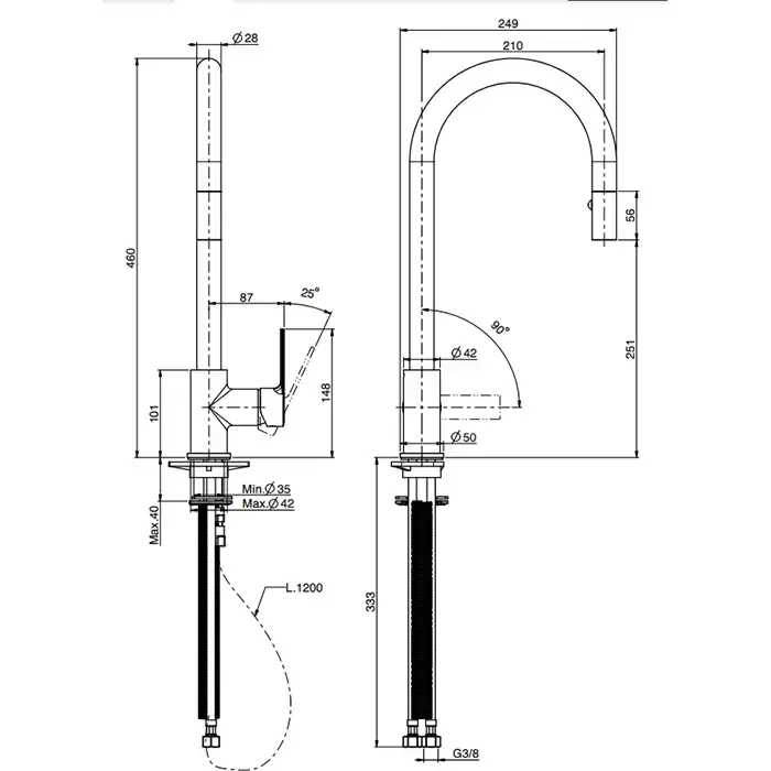 Fima Carlo Frattini Kitchen Смеситель для кухни, на 1 отв., с выдвижной лейкой Mast, цвет: хром