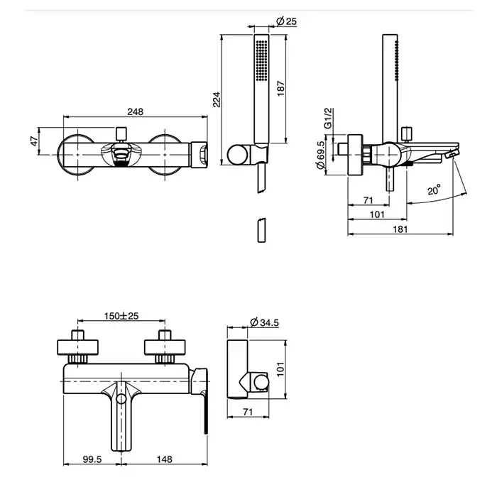 Fima Carlo Frattini Mast Смеситель для ванны, настенный, с ручным душем, цвет: золото