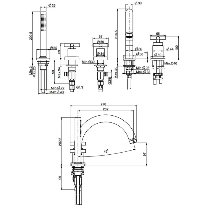 Fima Carlo Frattini Maxima Смеситель на борт ванны, на 5 отв., с ручным душем, цвет: черный матовый