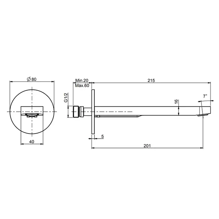 Fima Carlo Frattini Nomos Go Излив для ванны, 20см., настенный, цвет: хром