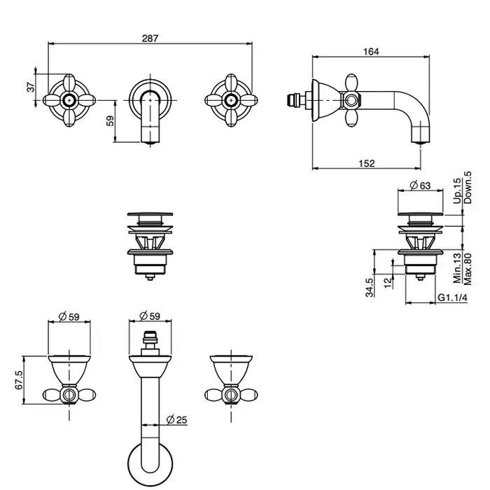 Fima Carlo Frattini Olivia Смеситель для раковины, встраиваемый, излив: 15см., цвет: золото