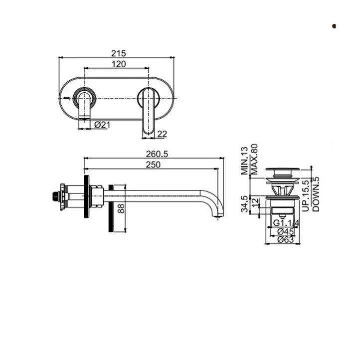 Fima Carlo Frattini Park Lane Смеситель для раковины, встраиваемый, на пластине, излив: 25см., донный клапан click-clack, цвет: хром